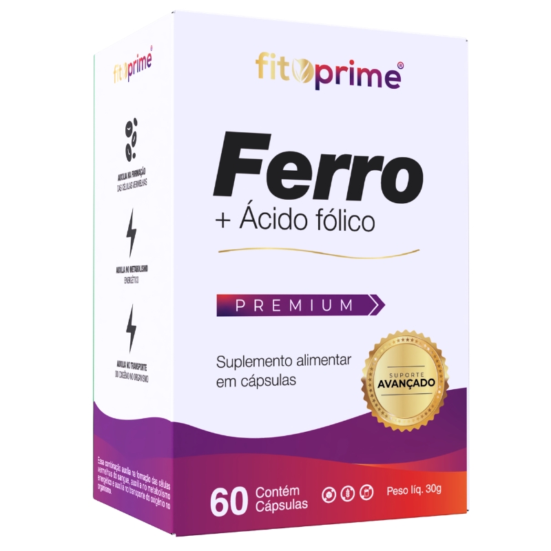 INGREDIENTES: Bisglicinato ferroso e ácido fólico. Antiumectante: dióxido de silício. Excipiente: amido de milho. Composição da cápsula: gelatina e umectante glicerina.